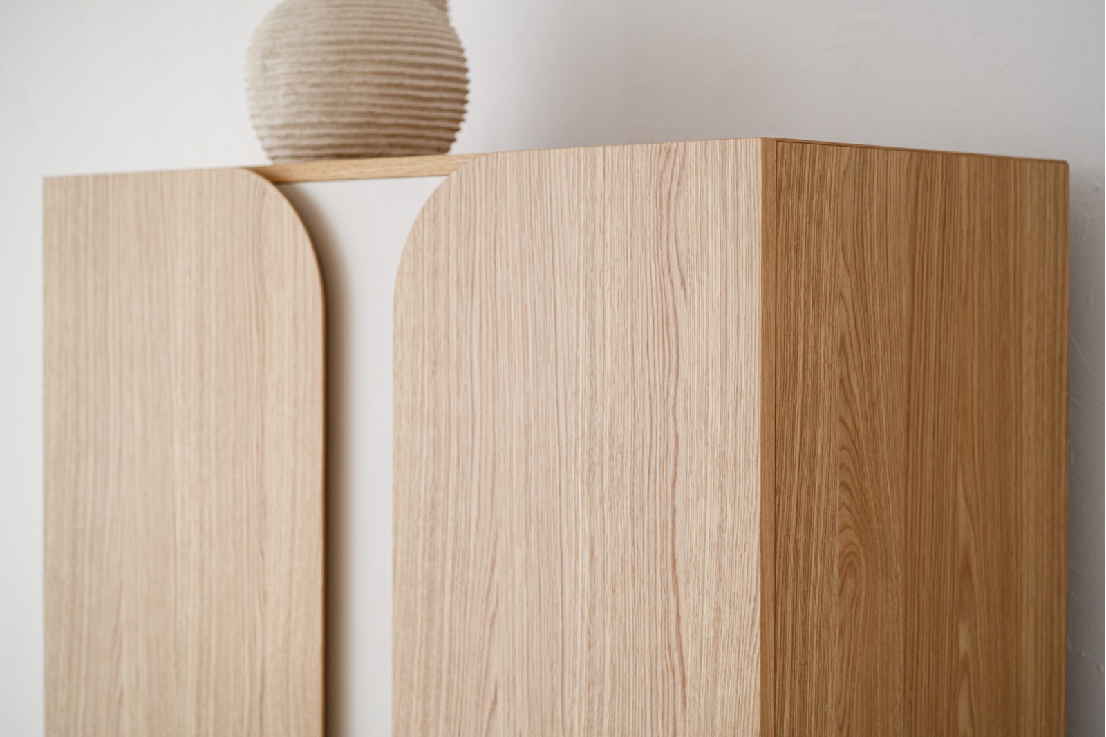 ARMARIO COLECCIÓN CURVA. ARMARIO REALIZADO EN TABLERO DE DM RECHAPADO EN ROBLE NATURAL ACABADO MATE.