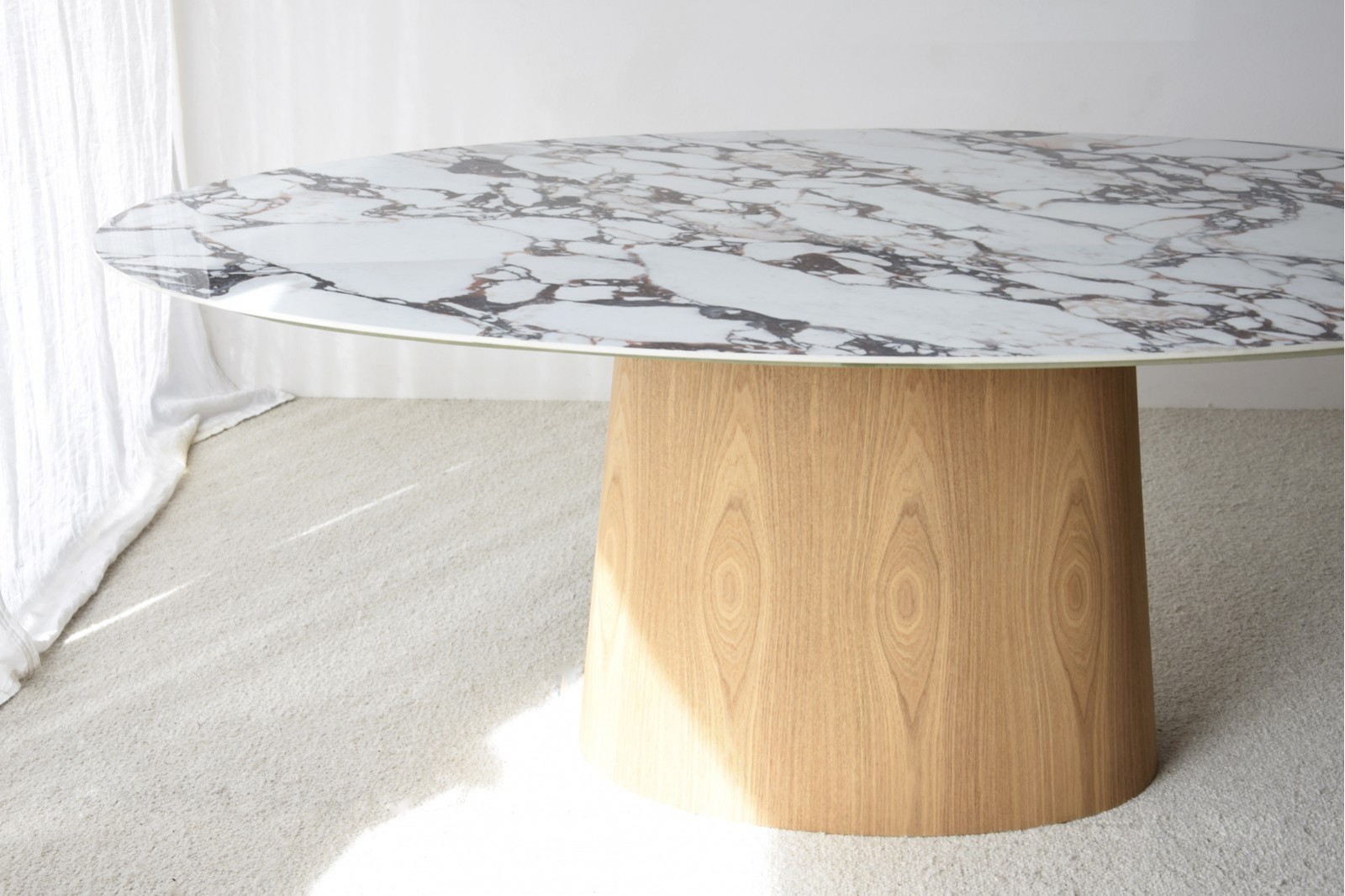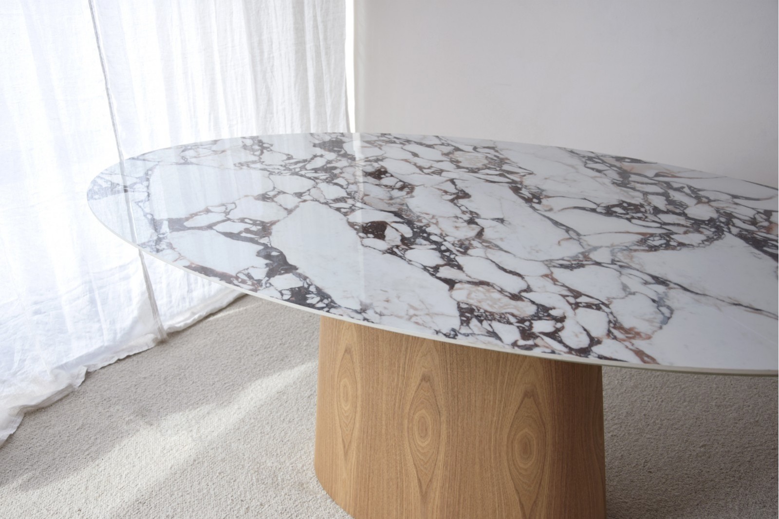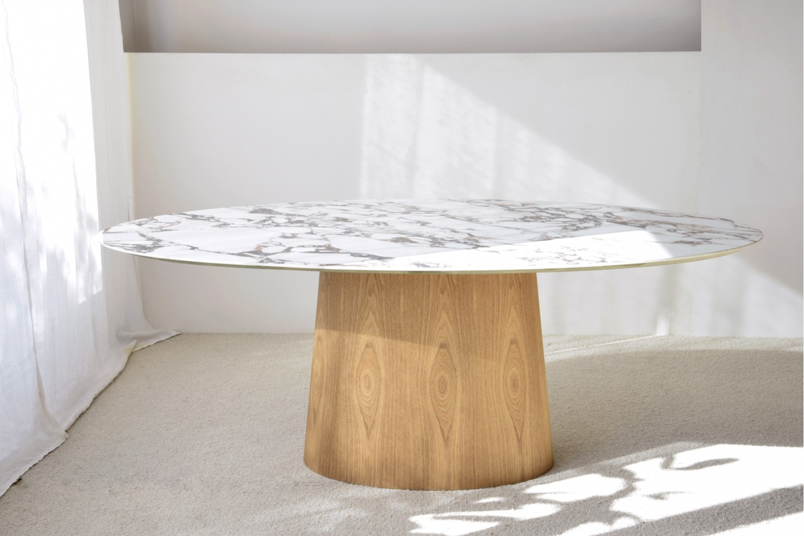 Mesa oval cerámico y fresno